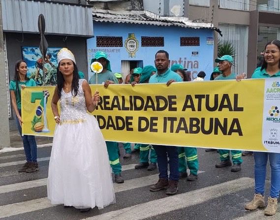 A Associação de Agentes Ambientais e Catadores de Materiais Reutilizáveis e Recicláveis de Itabuna (AACRRI) participou do Desfile Cívico de 7 de Setembro em Itabuna, atendendo ao convite da Escola Municipal Yolanda Pires – Sítio V (Fundação Marimbeta), que trouxe como tema central a “Sustentabilidade, o cuidado com o meio ambiente e a preservação da natureza”, que também celebrou aos 115 anos de emancipação do município.