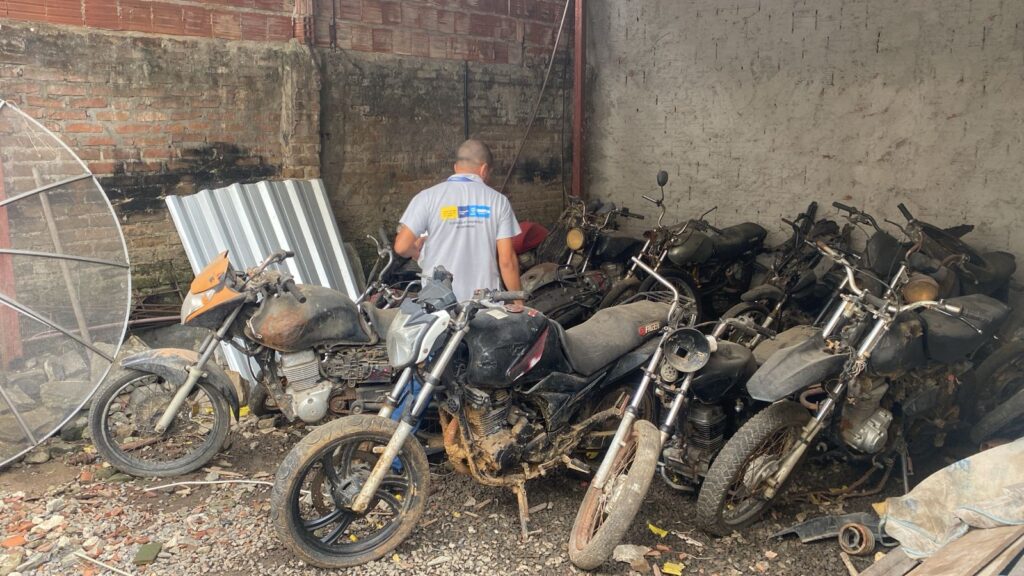 Agentes de Combate às Endemias inspecionam revenda de veículos no centro de Itabuna. Fotos Ascom