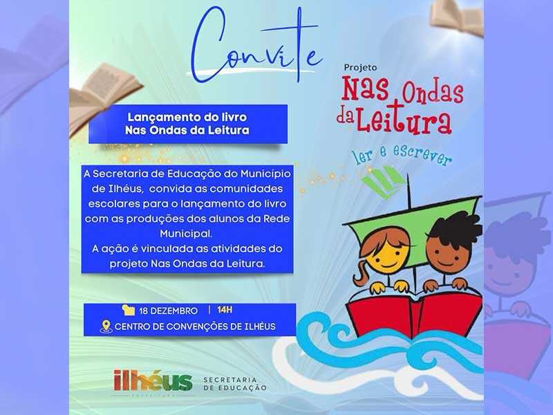 A Prefeitura de Ilhéus, através da Secretaria Municipal de Educação (Seduc), com apoio da editora IMEPH, promove, no dia 18 de dezembro (segunda-feira), no auditório do Centro de Convenções de Ilhéus, a partir das 14 horas, o evento de lançamento dos livros produzidos no Projeto “Nas Ondas da Leitura”.