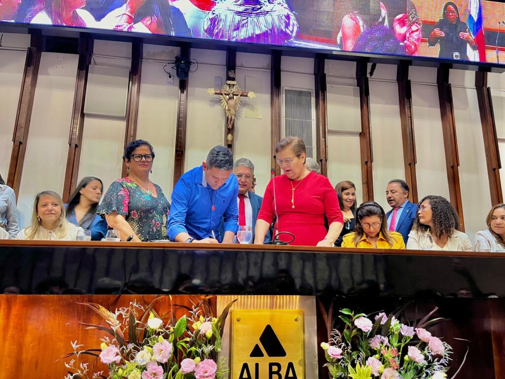 Em exercício como governadora desde o último sábado (11), a desembargadora Cynthia Resende participou da sessão especial que marcou a data e assinou o termo de cooperação com a Associação dos Municípios do Sul, Extremo Sul e Sudoeste Baiano (Amurc) para a implantação de mais de 40 salas ‘Elas à Frente’, projeto da pasta estadual, no interior da Bahia.