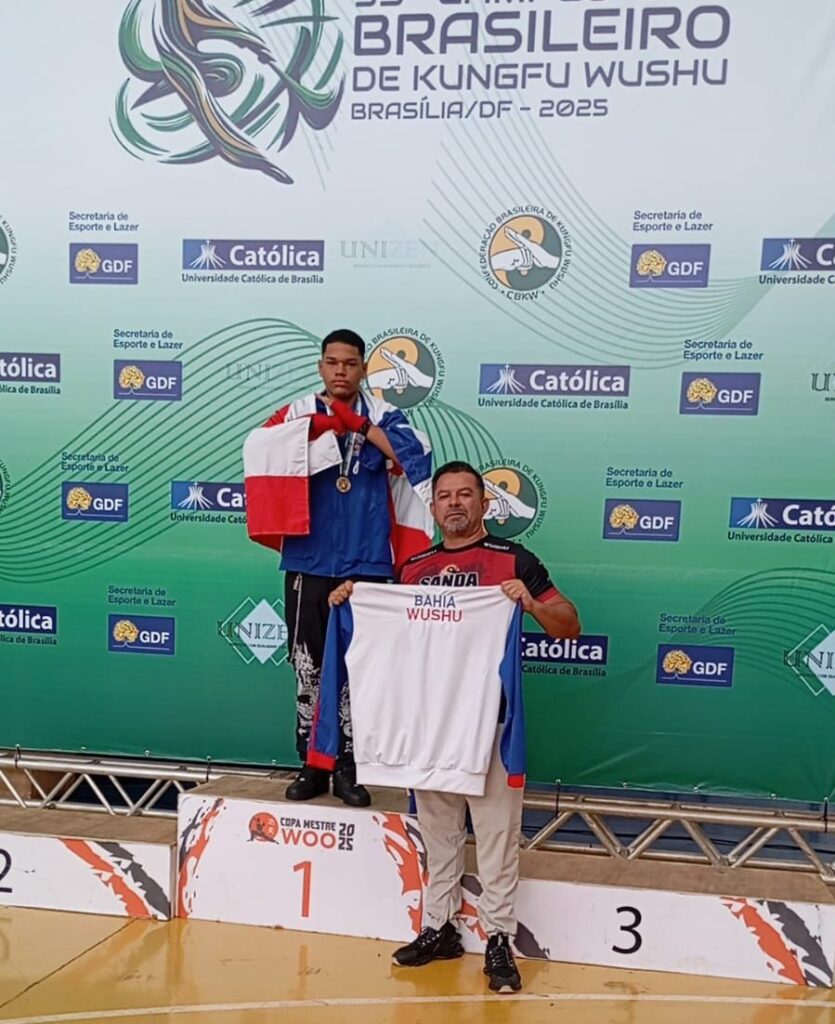 Atletas do município de Ibirapitanga conquistaram destaque nacional ao garantirem três medalhas, uma de ouro e duas de bronze, no 35º Campeonato Brasileiro de Kung Fu Wushu (35º CBKW), realizado em Brasília/DF, entre os dias 10 e 14 de dezembro de 2025. A competição reuniu representantes de diversos estados do país e contou com a participação de cinco alunos do distrito de Itamarati, que representaram com excelência o município e o Estado da Bahia na modalidade Wushu Sanda (Boxe Chinês), com apoio da Prefeitura de Ibirapitanga, que viabilizou a participação dos atletas no evento.