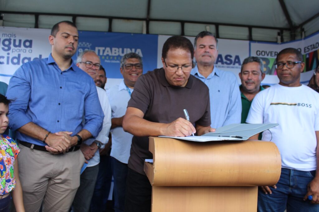 O prefeito de Itabuna, Augusto Castro (PSD), e o presidente da Empresa Municipal de Águas e Saneamento (EMASA), Raymundo Mendes Filho, assinaram na manhã de hoje, dia 9, no Bairro Jorge Amado, a ordem de serviço para ampliação do sistema de abastecimento de água para a zona oeste. As obras que serão iniciadas de imediato e fazem parte do Projeto Mais Água para a Cidade.