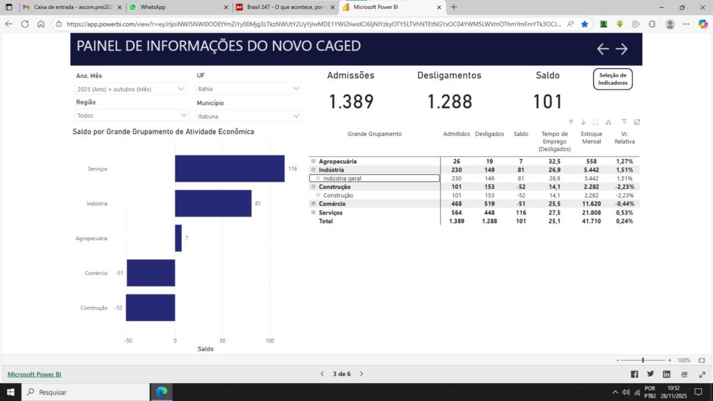 CAGED demonstra trajetória positiva de Itabuna na geração de empregos em outubro