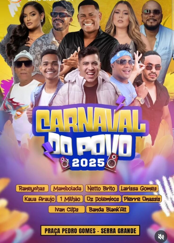 CARNAVAL DO POVO EM SERRA GRANDE TERÁ ATRAÇÕES NACIONAIS REGIONAIS E TALENTOS DA TERRA
