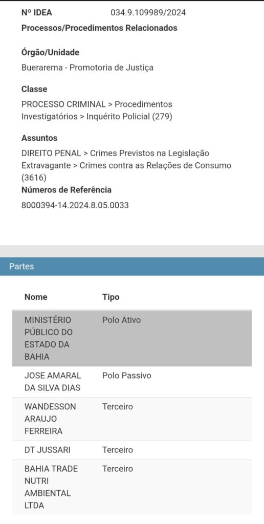 A Nutri Ambiental, envolvida diretamente na polêmica, já é investigada pelo Ministério Público por supostamente distribuir cestas básicas vencidas durante campanhas eleitorais nos municípios de Jussari, Itaju do Colônia e Buerarema. As denúncias indicam que a maior distribuição dessas cestas teria ocorrido em apoio direto à campanha do atual prefeito.