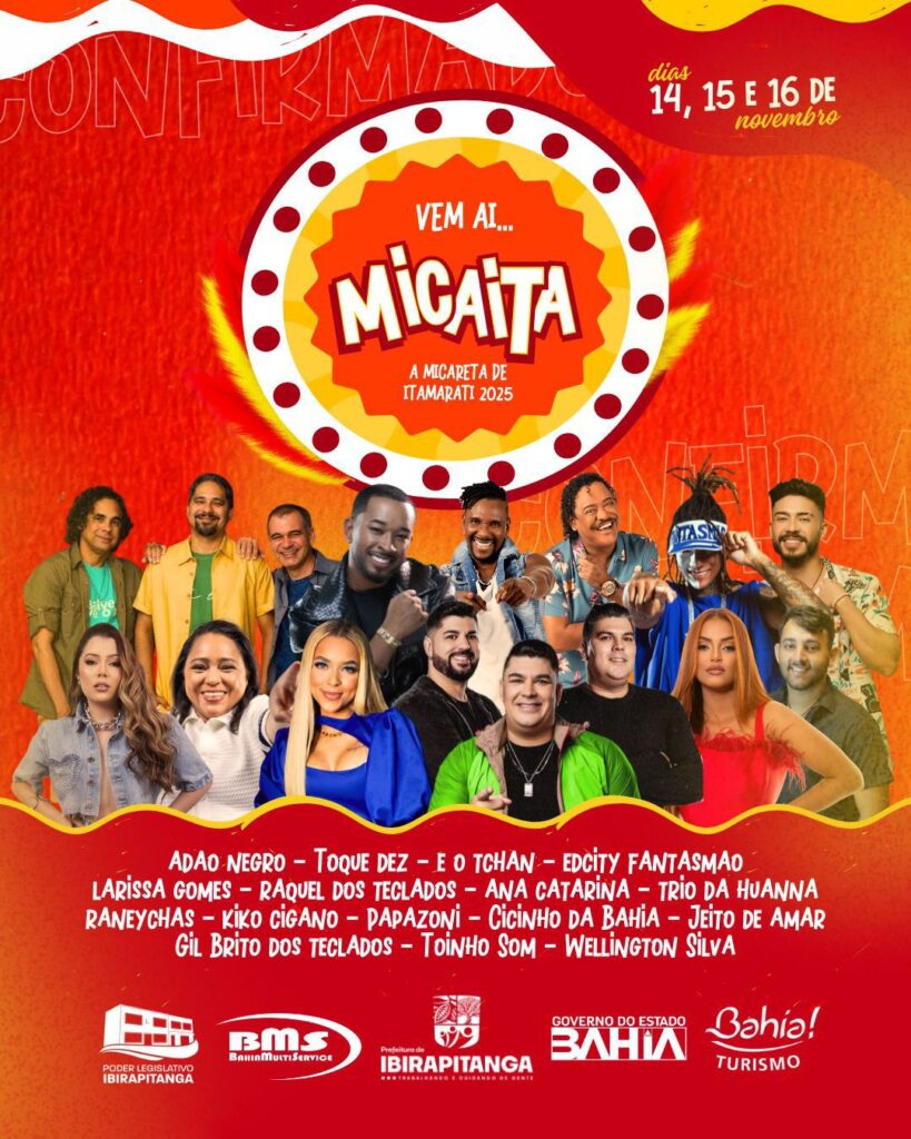 A Prefeitura de Ibirapitanga realizará, nos dias 14, 15 e 16 de novembro, a maior micareta da história de Itamarati, o MicaIta. O evento acontecerá no estádio do distrito, que se tornará o verdadeiro coração da folia, com uma programação que promete agitar toda a região e reunir milhares de foliões em uma grande celebração de alegria, música e cultura.