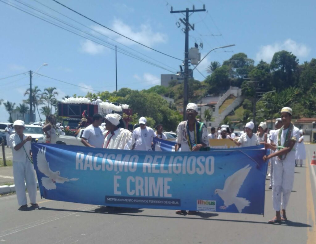 No último domingo (15), aconteceu a 7ª Caminhada pela Paz e contra a Intolerância Religiosa, com apoio da Prefeitura de Ilhéus, reunindo representantes de diversos credos, unidos para transmitir a mensagem de paz, de respeito e harmonia e pelo fim da intolerância e preconceito religioso. A ação, que teve como tema, neste ano, “Caminhos abertos. A terra que você pisa tem o nosso Axé!” E Exu como entidade patrona, foi organizada pelo Movimento Cultural Povos de Terreiros de Ilhéus (MCPTI); pela Rede Nacional de Religiões Afro-Brasileiras e Saúde – Núcleo Ilhéus; Fórum Municipal de Políticas de Promoção da Igualdade Racial de Ilhéus (FOPROMI) e sociedade civil.