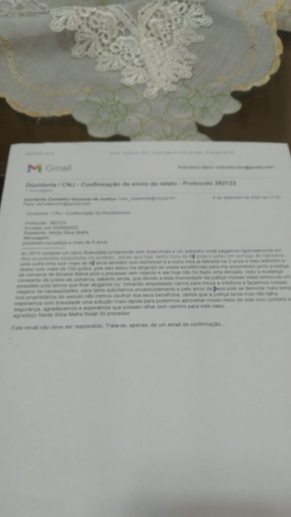 (Enquanto esta matéria era redigida, a Sra. NEIDE veio a falecer), reclamantes, ainda vivos fazem apelo dramático aos Advogados do caso, ao Tribunal de Justiça e a quem mais possa, inclusive a imprensa que divulguem o absurdo, na busca de solução do caso para encerrar a bandidagem que o envolve o crime e conclua o processo reparando o mal e prejuízo causado aos necessitados compradores do tal veículo.