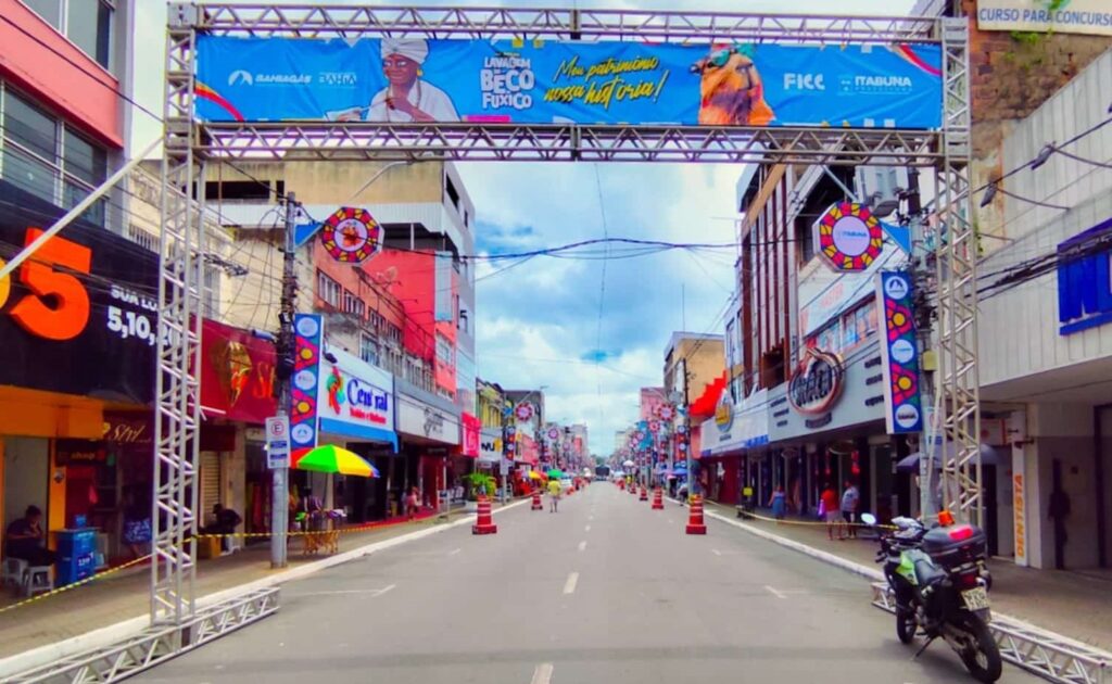 Desde quinta-feira, dia 20, que a Avenida do Cinquentenário e Praça Adami estão decoradas para a Lavagem do Beco do Fuxico com pórticos e peças nos postes. Além disso, a principal artéria comercial está fechada ao tráfego e estacionamento de veículos automotores, já que entre o trecho entre a Praça Otávio Mangabeira e a Rua Adolfo Maron ganharam barracas para ambulantes cadastrados para a venda de comidas e bebidas.