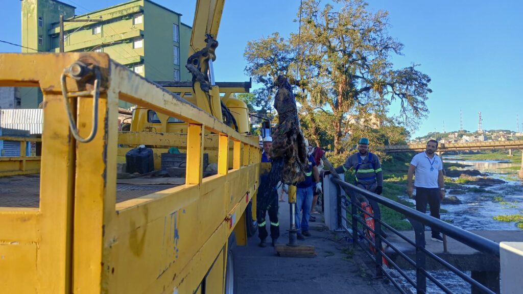 A engenheira civil da empresa RCI Jéssica Chaussê Santos explicou que a execução de limpeza das comportas pretende liberar entre 20 e 30 centímetros das do nível da água do rio a montante e isso facilita o fluxo da água e a viabilidade dos serviços como a construção das fundações.