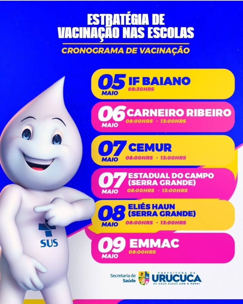 PREFEITURA DE URUÇUCA INTENSIFICA VACINAÇÃO NAS ESCOLAS; CONFIRA AS DATAS E LOCAIS