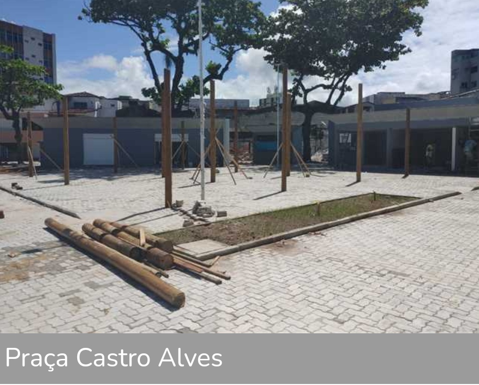 – Modernização da Praça Castro Alves – assentamento de revestimento, assentamento do tapete de grama, pintura e assentamento do intertravado;