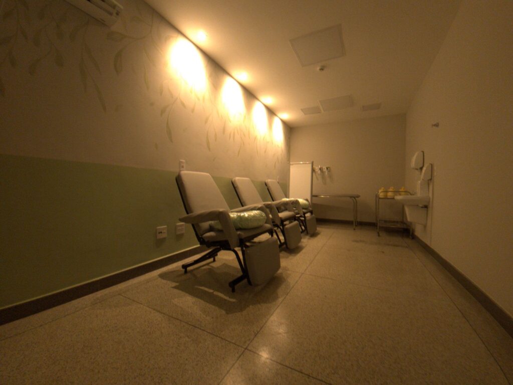 Uma sala foi especialmente pensada e preparada com decoração de painéis visuais que remetem à uma ambiência de bosque e, no local, foram instalados difusores aromáticos. Serão ofertados serviços de musicoterapia e de iluminação quente apropriada e materiais educativos, que passarão a ser distribuídos entre as pacientes.