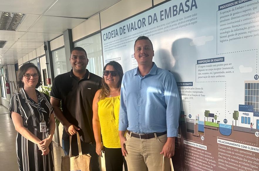 Na Embasa, Iago Oliveira e sua equipe se reuniram com Adelia, Assessora do Gabinete da Presidência, e Thania Karina, Engenheira Civil. O principal tema abordado foi o esgotamento sanitário do projeto do lago, dentro das metas e planejamentos da Embasa, alinhando estratégias para melhorias no saneamento básico municipal.