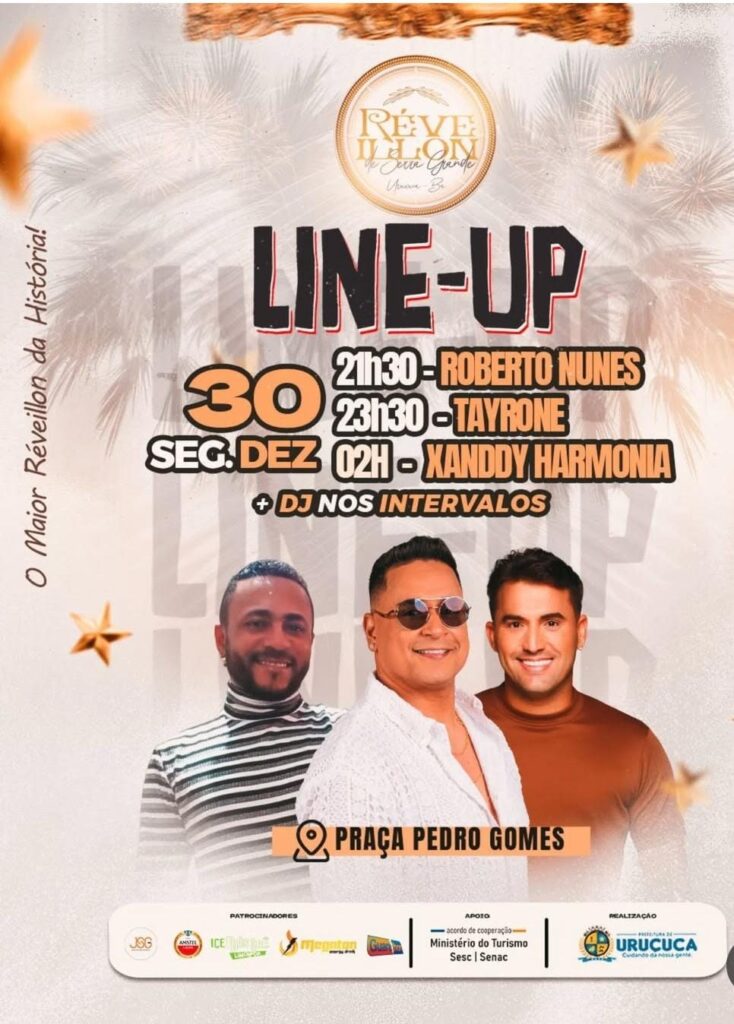 Diante de tudo isso, a prefeitura convida a todos a celebrar a chegada do Ano Novo no paraíso, dias 30 e 31 de dezembro na Praça Pedro Gomes em Serra Grande, Uruçuca.