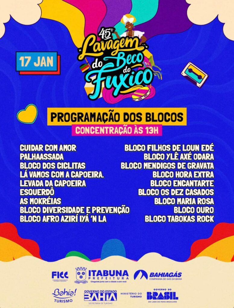 Neste sábado, dia 17, todas as atenções e energias dos itabunenses e visitantes estarão direcionadas para a 45ª Lavagem do Beco do Fuxico, um Carnaval Cultural tradicional, onde a magia e a alegria são lideradas pelo cortejo das baianas estilizadas.