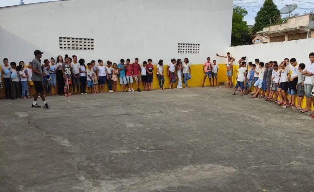 No primeiro momento os alunos participaram de bate papo sobre hábitos saudáveis e sobre a importância de ter uma vida ativa nas atividades físicas. Em seguida foi abordado a importância do brincar, ocupando o tempo livre fora das telas.